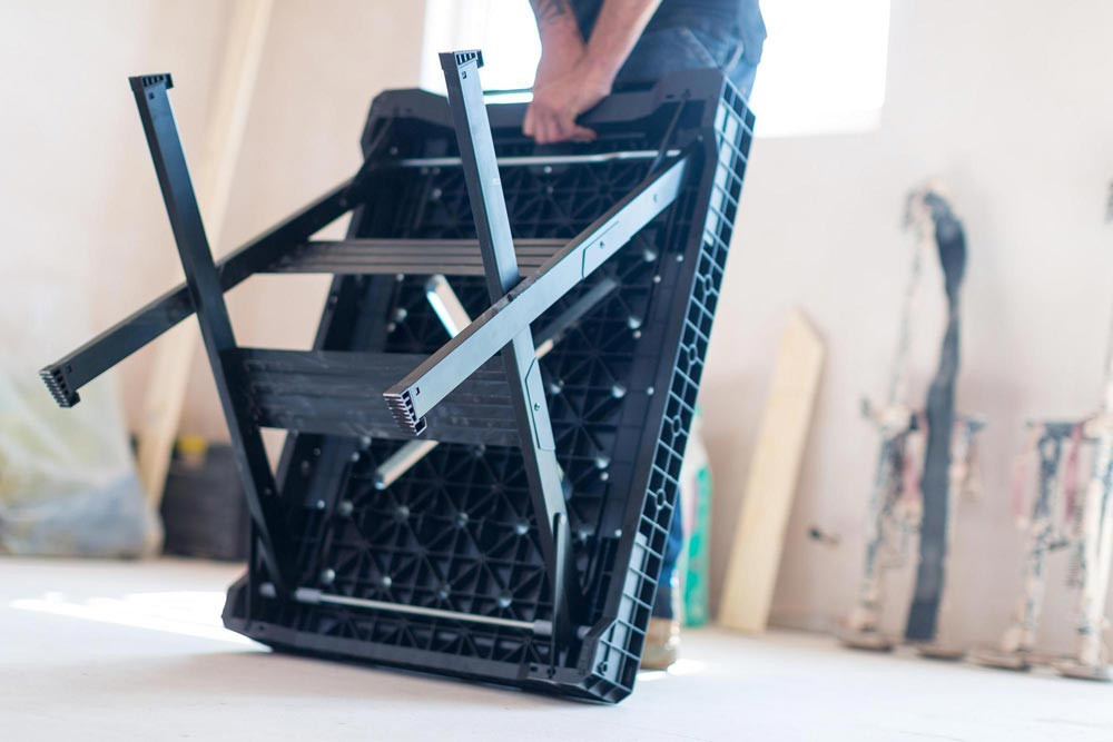 klappbar · 455 kg Tragkraft · Arbeitsfläsche 850 x 600 mm · Tragegriff · Metallbeine