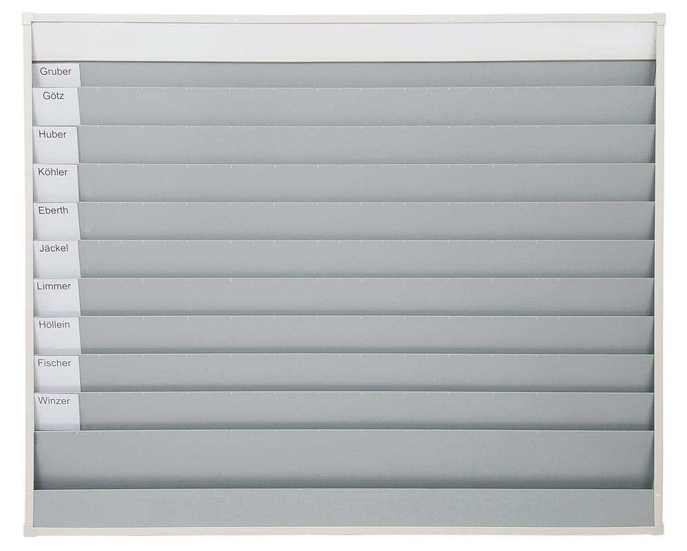 Werkstattplaner breit, Beschriftungsleiste, 10 Fächer, 1 Ablagefach, BxTxH 1580x76x1282 mm