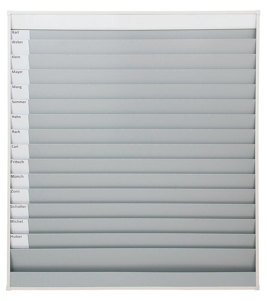 Werkstattplaner breit, Beschriftungsleiste, 15 Fächer, 1 Ablagefach, BxTxH 1580x76x1757 mm