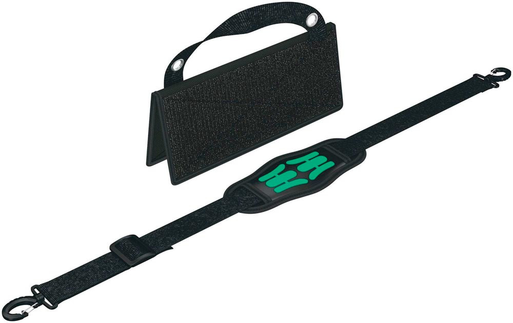 superleicht und mobil, ideal für alle Wera Taschen und textilen Boxen mit rückseitigem Klett · Taschen und Boxen individuell einfach und sicher an den Werkzeugträger kletten · alle Händen bleiben beim Transport dank des Tragegurts frei
